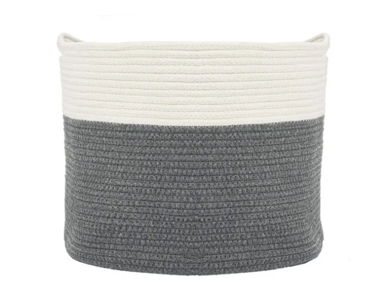 In Grau und Weiß bringt der runde Faltkorb skandinavische Lässigkeit in jedes Zimmer.