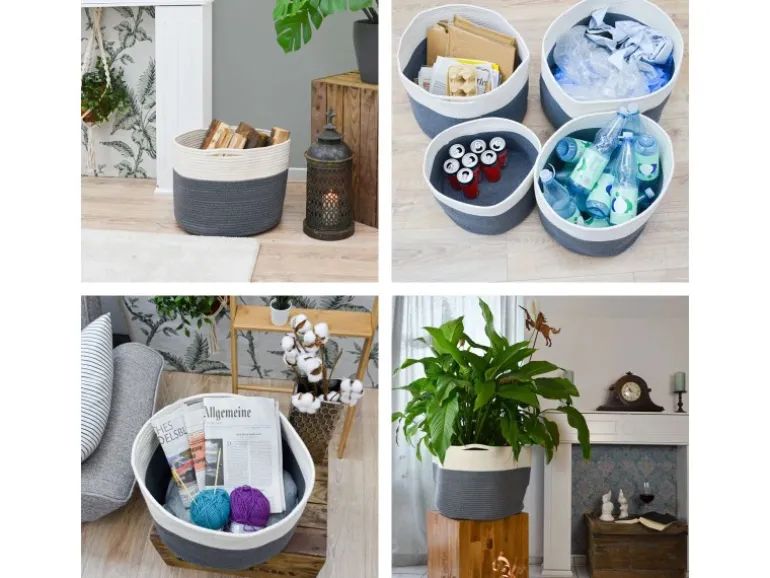 Für Decken und Kissen im Schlafzimmer, Handtücher im Bad, Wäsche im Kleiderschrank oder als XL Blumentopf: Für die passende Höhe kannst Du den Seilkorb sogar krempeln.
