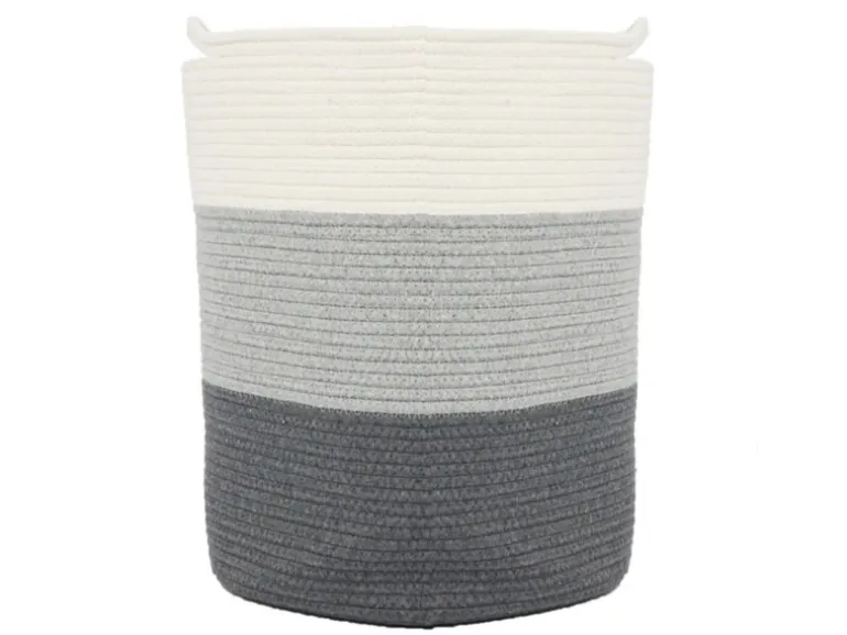 In Grau und Weiß bringt der runde Faltkorb skandinavische Lässigkeit in jedes Zimmer.