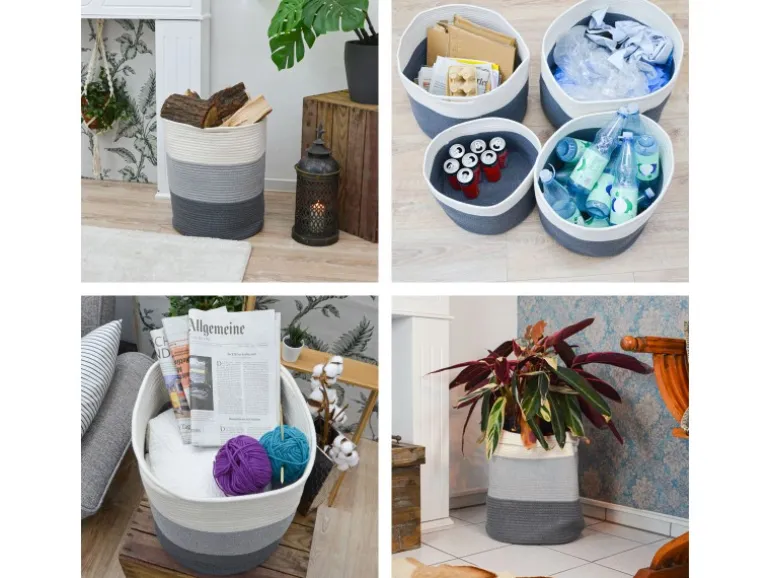 Für Decken und Kissen im Schlafzimmer, Handtücher im Bad, Wäsche im Kleiderschrank oder als XL Blumentopf: Für die passende Höhe kannst Du den Seilkorb sogar krempeln.