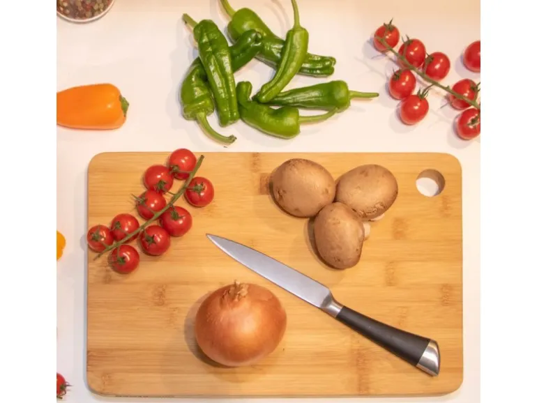Das Bambusbrett ist kratzfest, schnittfest und extra hart, aber trotzdem messerschonend.