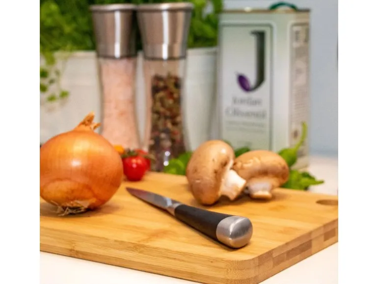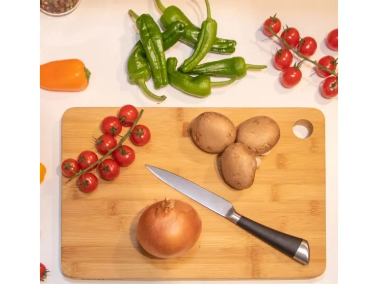 Das Bambusbrett ist kratzfest, schnittfest & extra hart, aber trotzdem messerschonend.