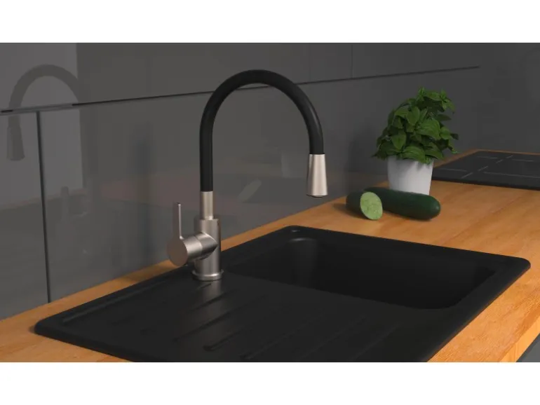 Der Auslauf der Küchenarmatur in Soft Touch Qualität lässt sich komfortabel in alle Richtungen biegen