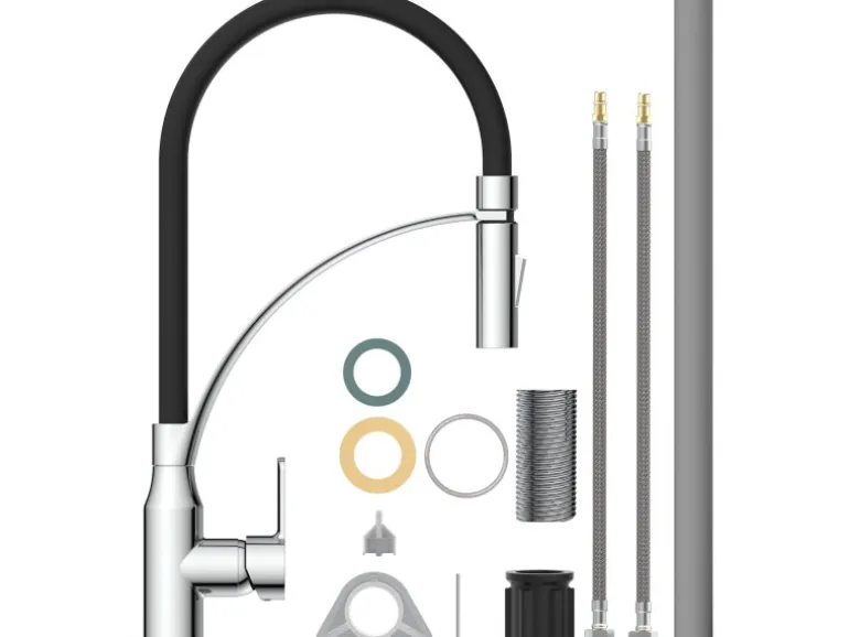 Im Lieferumfang enthalten ist ein Soft-Touch-Schlauch je in schwarz und grau – variabel austauschbar je nach Küchenstil