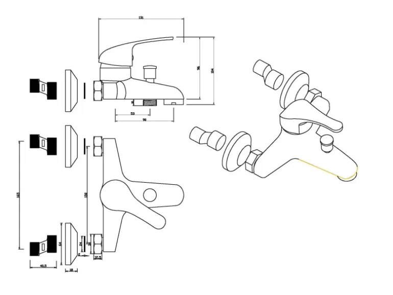 Hochglanz-Verchromte Badewannenarmatur im zeitlosen, klassischen Design