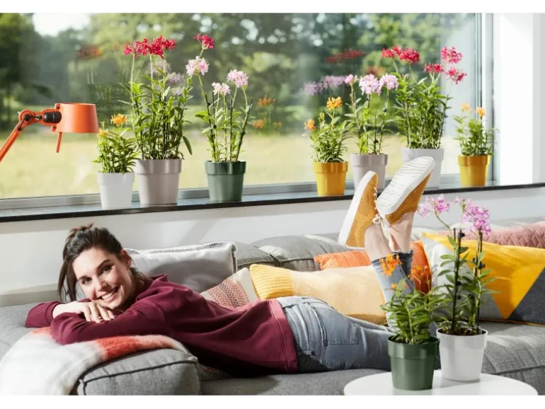 Der Elho Blumentopf B.for Original Mini besticht durch sein modernes und klares Design. Der B.for Original Mini ist ein kleiner Blumentopf, der die schönsten Blüh- und Zimmerpflanzen groß rausbringt. Sein klares Design und der Kontrast aus glänzenden Kanten und matter Oberfläche verleihen ihm ein heiter-spielerisches Aussehen. Wegen seines kompakten Formats findet dieser Mini-Blumentopf so gut wie überall sein Fleckchen im Haus, sei es auf dem Nacht- oder Beistelltisch, im Regal oder in einem Eckchen im Wohnzimmer. Etwas Grün genügt schon, um der Einrichtung eine feine, reizvolle und ansprechende Note zu geben. Am besten mit mehreren Minis in unterschiedlichen Größen und Farben kombinieren und ein individuelles Topf-Set zusammenstellen.