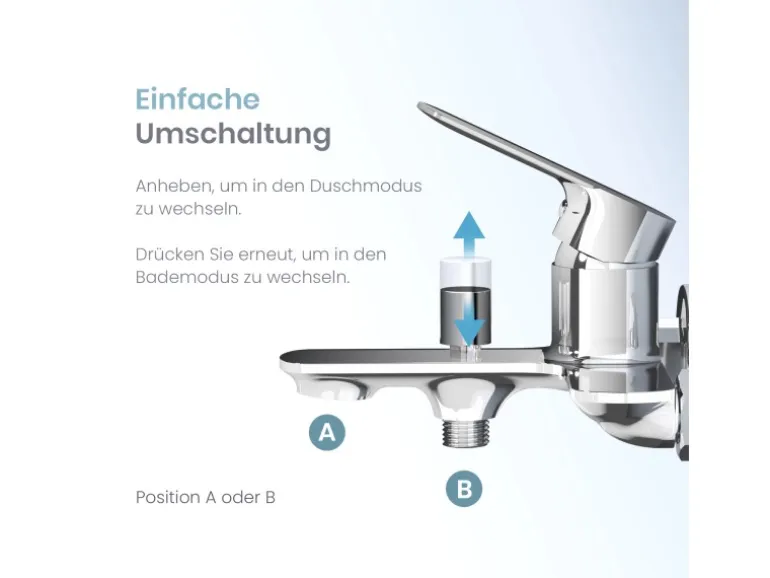 Praktischer Ziehumsteller für einfachen Wechsel zwischen Dusche und Wanne