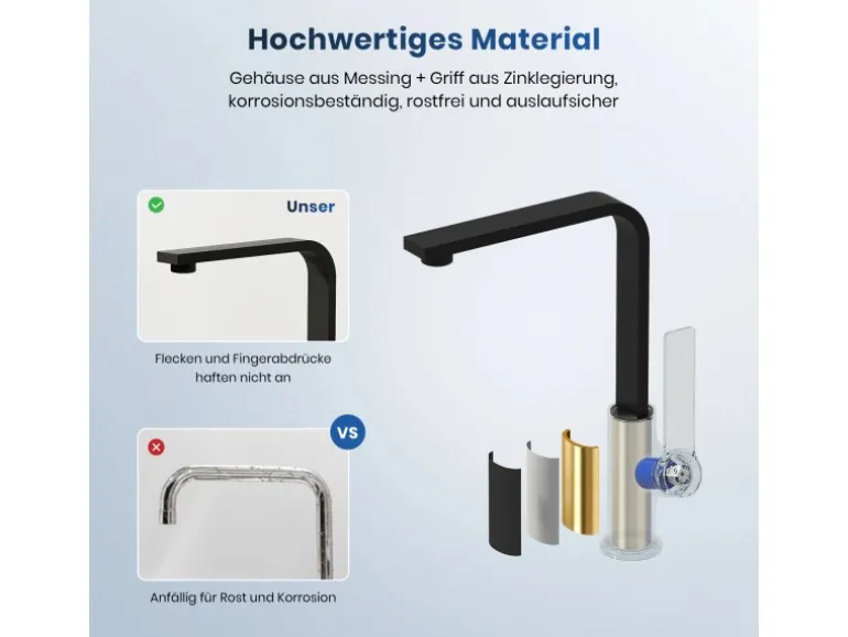 Langlebige: Robustes Edelstahlgehäuse und Keramikkartusche für Lebensdauer und Haltbarkeit.