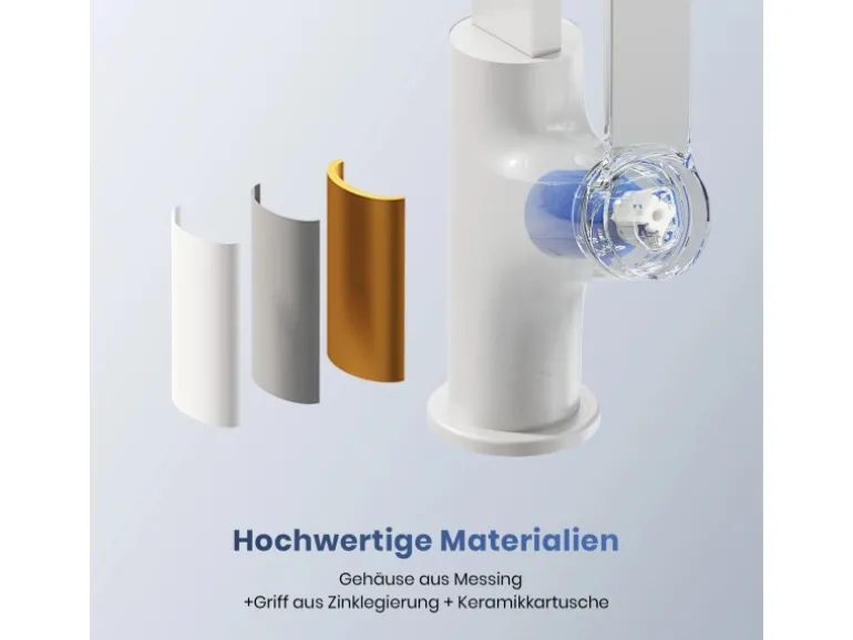 Emke Küchenarmatur Weiß Matt im Ultradünnen Design 30x22x10 cm Küchenarmatur Drehbar Wasserhahn