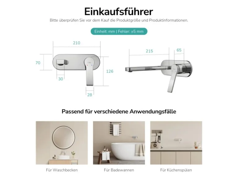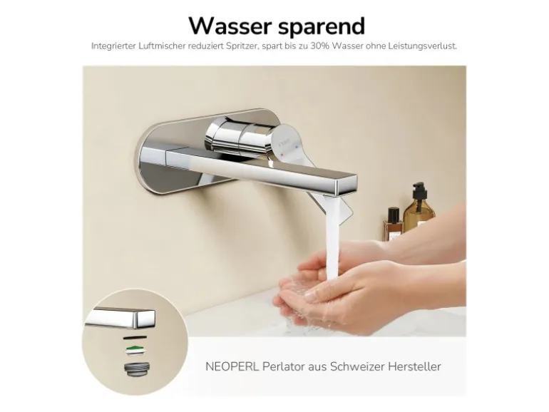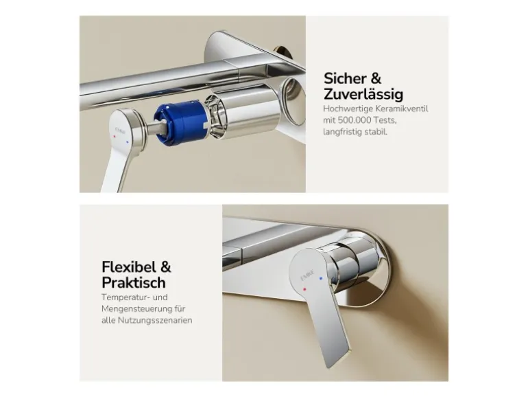 Emke Wand Waschtischarmatur Inklusive Grundkörper 288 x 210 x 70 mm Verchromt Mischbatterie für Waschbecken