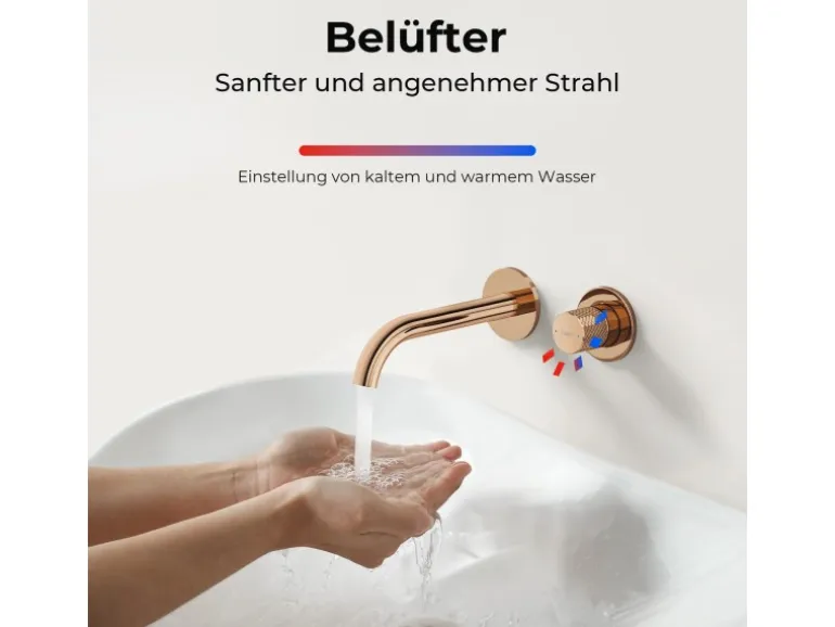 Emke Waschtischarmatur Unterputz für Wandmontage Rosengold Wasserhahn Badarmatur