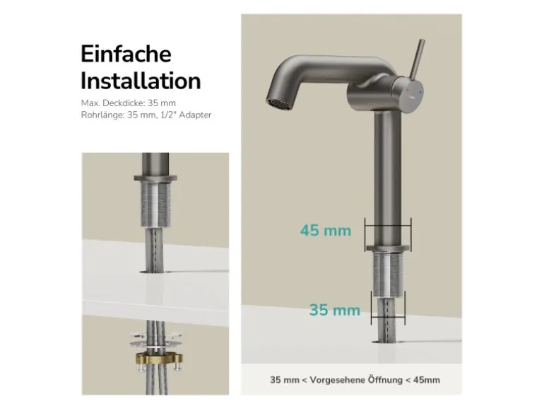 Perfekte Maße: Passt in die meisten Badezimmerbecken mit Standardgewinde.