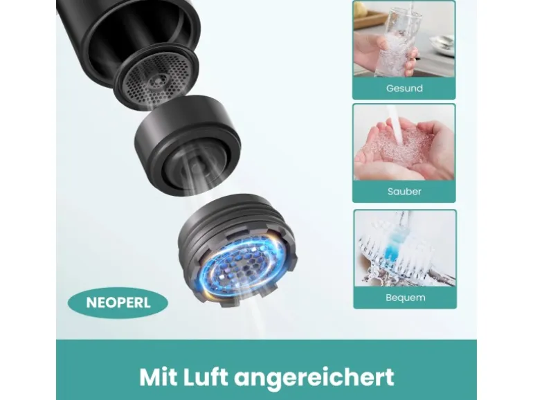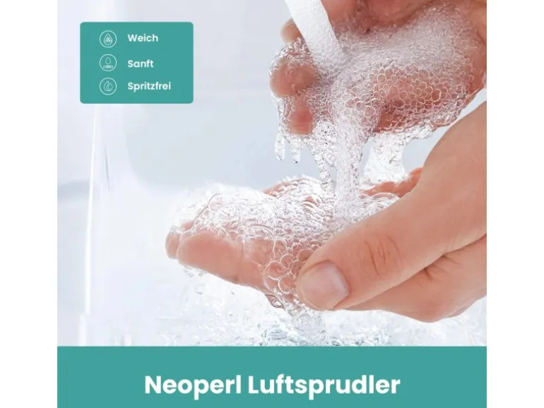 Exzellente Strahlpräzision: Neigungswinkel und Luftsprudler für perfekten Wasserstrahl.