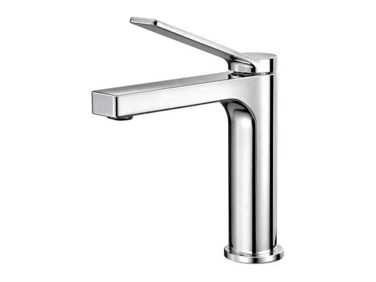 Elegantes Design: Armatur mit ergonomischem, geneigtem Griff für komfortable Handhabung.