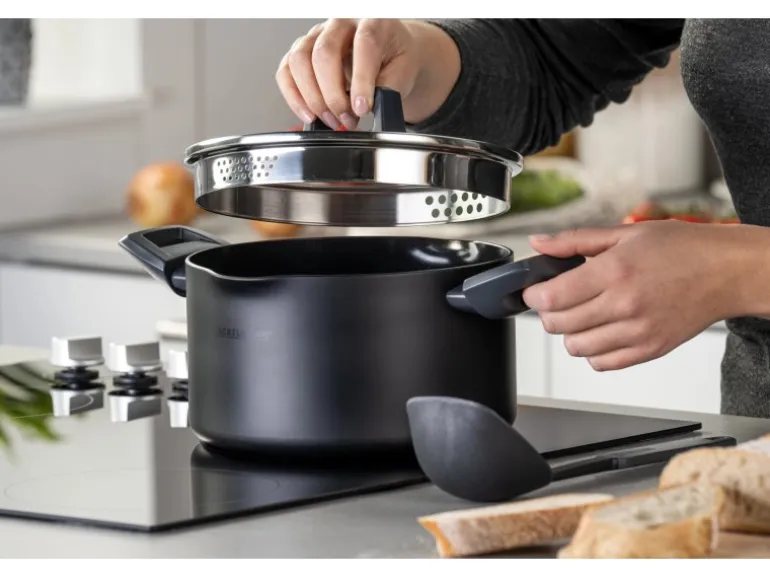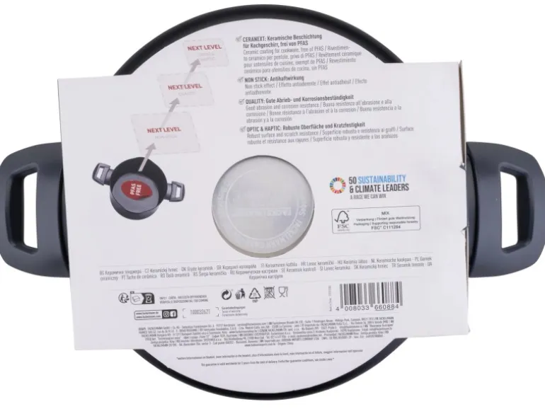 Der Fackelmann Kochtopf aus der Serie Statement mit einem Durchmesser von 20 cm ist aus gepresstem, recycletem Aluminium gefertigt und verfügt über eine keramische, PFAS-freie Beschichtung. Der Deckel aus gehörtetem Glas ist inklusive. Er verfügt über ein Entlüftungsventile sowie eine Ausgießfunktion was ihn vielseitig einsetzbar macht. Der Kochtopf passt perfekt zu den Statement Küchenhelfern. Der Kochtopf mit Deckel ist backofengeeignet und hitzebeständig bis + 150 °C und sowohl für Gas-, Elektro und Induktionsherd als auch für Glaskeramikkochfelder geeignet.