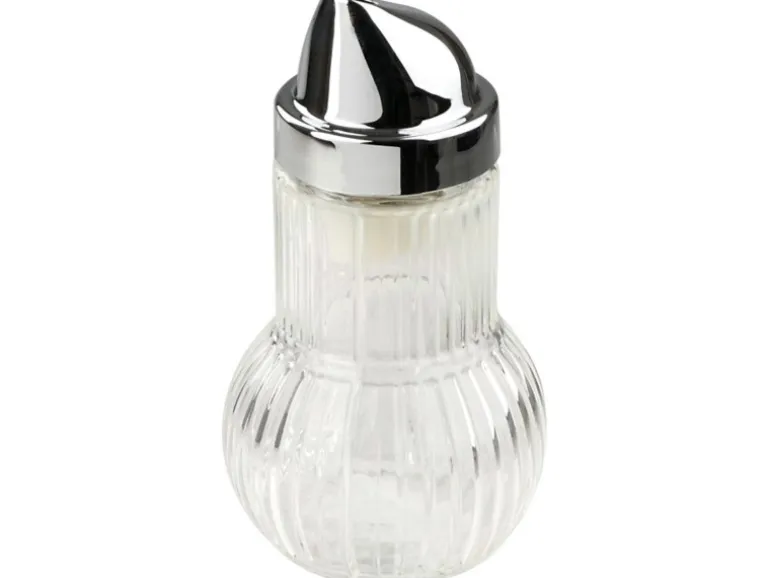 Fackelmann Zuckerdosierer Rubin, Pouring&Dispensing, Deckel: ABS verchromt, Körper: Glas, 130 mm, 160 ml, Silber/Transparent