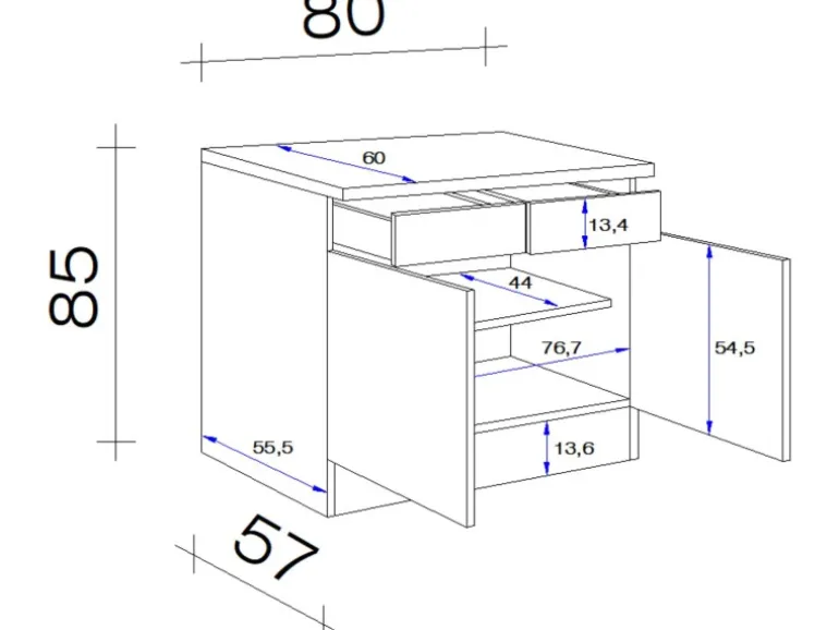 Maße: (B x H x T) 80 x 85 x 60 cm