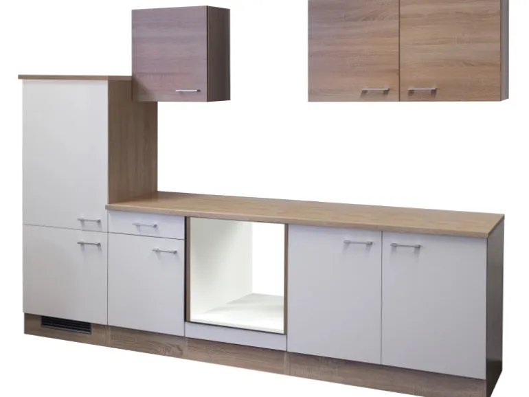 Der 270 cm breite, 200 cm hohe und 60 cm tiefe Küchen-Leerblock besteht aus (BxHxT):