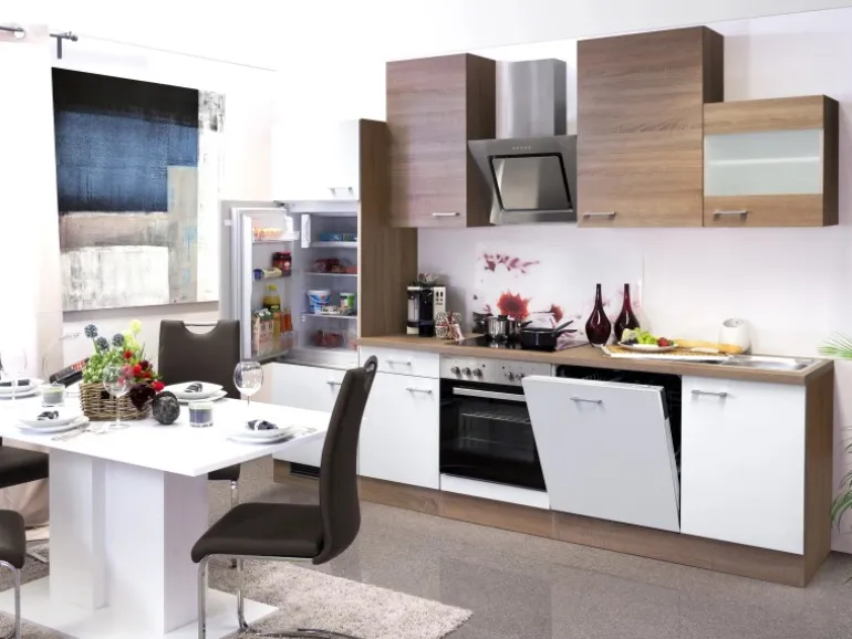 Die 280 cm breite Küchenzeile besteht aus (BxHxT):