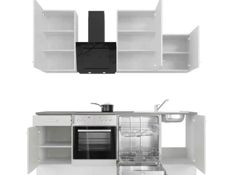 Die 220 cm breite Küchenzeile (B x H x T) besteht aus: