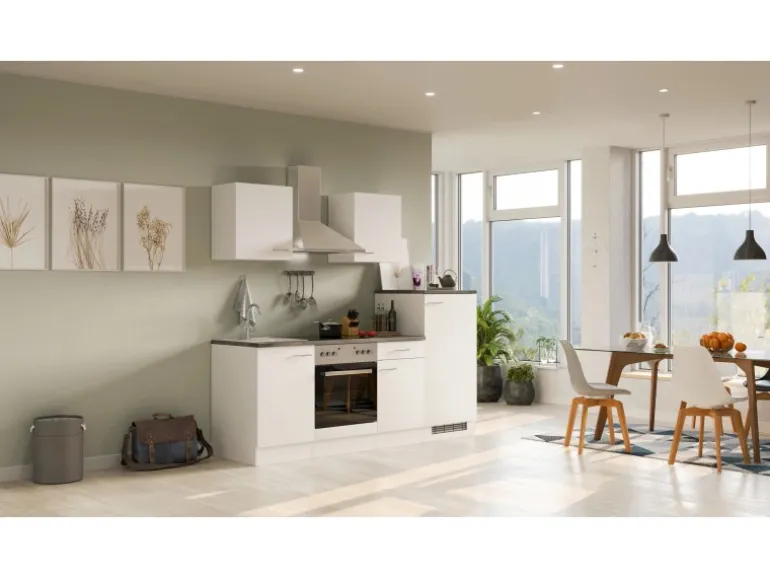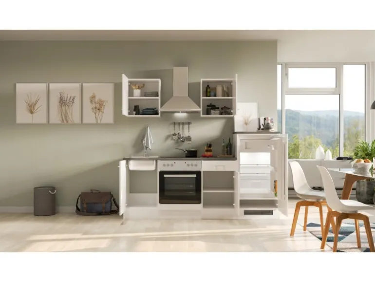 Ob erste Wohnung, Single-Haushalt, Ferienwohnung oder im Büro – diese kleinen Küchen von 220 cm Breite überzeugen durch ihr Design und die vielfältigen Funktionen. Die Türen der Schränke sind sowohl für den links- als auch rechtsseitigen Aufbau vorbereitet, was Ihnen ein Höchstmaß an Flexibilität bei der Montage bietet. Die hochwertigen und pflegeleichten Kunststofffronten und die stabile Bauweise der Schrankkörper garantieren Ihnen lange Freude an Ihrer Küche.