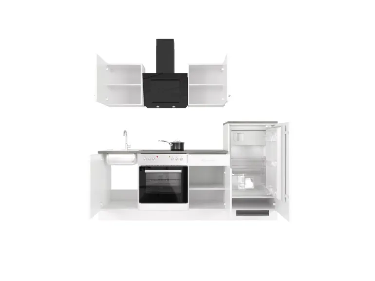 Ob erste Wohnung, Single-Haushalt, Ferienwohnung oder im Büro – diese kleinen Küchen von 220 cm Breite überzeugen durch ihr Design und die vielfältigen Funktionen. Die Türen der Schränke sind sowohl für den links- als auch rechtsseitigen Aufbau vorbereitet, was Ihnen ein Höchstmaß an Flexibilität bei der Montage bietet. Die hochwertigen und pflegeleichten Kunststofffronten und die stabile Bauweise der Schrankkörper garantieren Ihnen lange Freude an Ihrer Küche.
