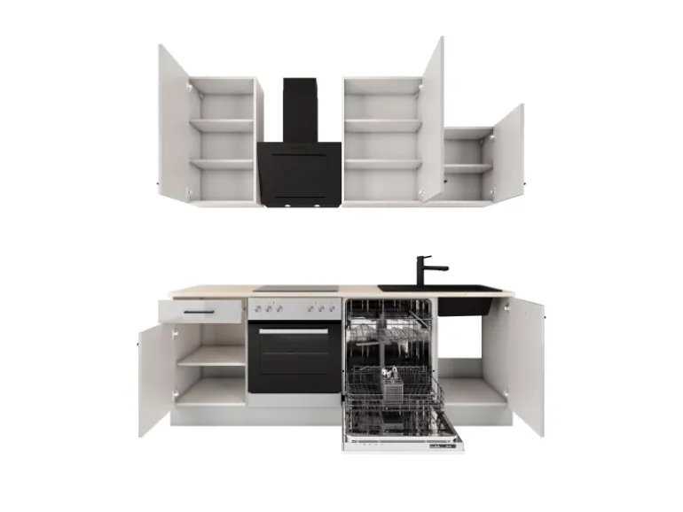 Die 220 cm breite Küchenzeile (B x H x T) besteht aus: