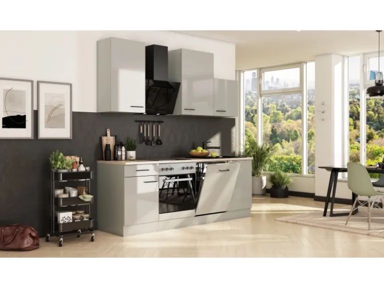Flex-Well Küchenzeile (reversibel) mit pflegeleichter Oberfläche in Lichtgrau (glänzend)