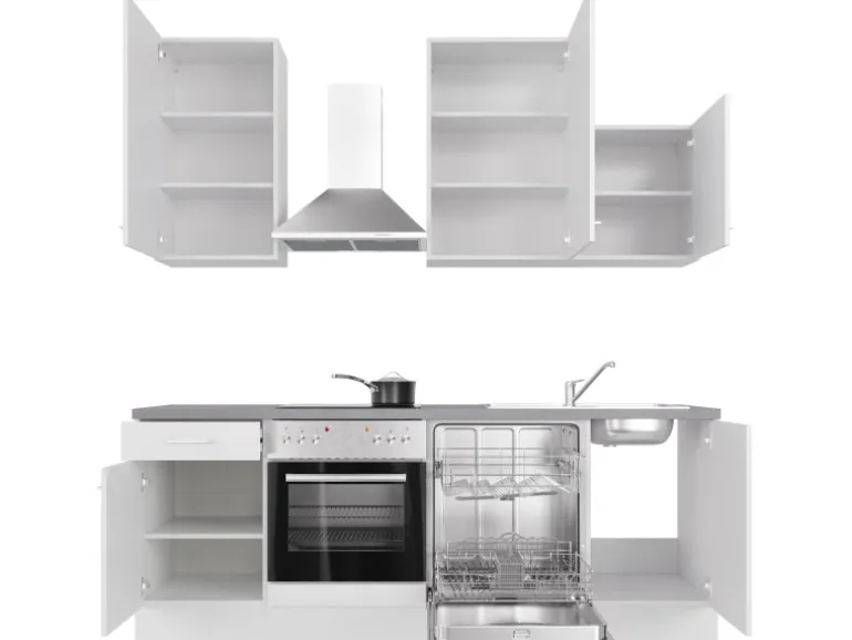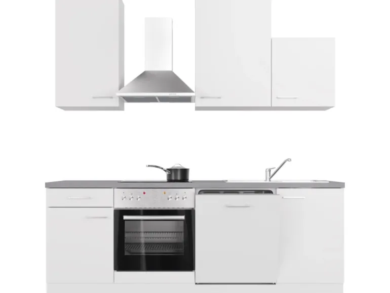 Die 220 cm breite Küchenzeile (B x H x T) besteht aus: