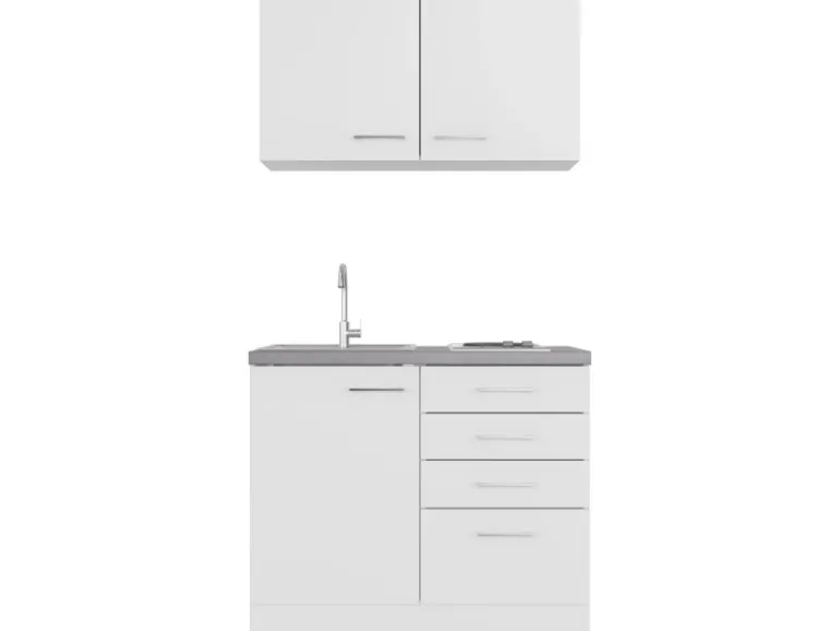 Die 100 cm breite Single-Küchenzeile besteht aus (H x B x T):