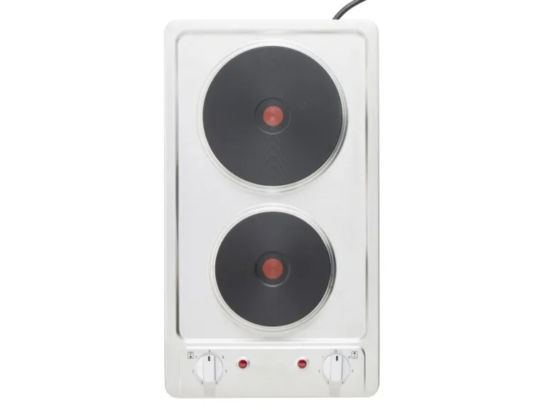 2-Platten-Einbaukochfeld: PKM EB-DKF-2, Edelstahl Herdmulde, 2-fach mit Knebelsteuerung, steckerfertig, Leistung: 3000 Watt, Anschluss: Schukowinkelstecker mit zweifachem Erdungssystem, Regelung: 6-Takt Schalter