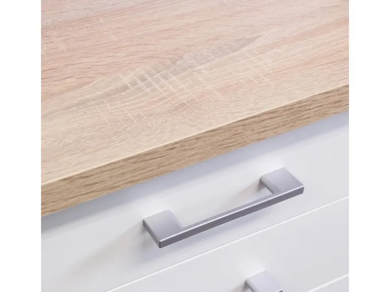 Ein 50 cm und ein 100 cm breiter Hängeschrank mit Einlegeböden bieten reichlich Platz für Geschirr und Gläser. Im Unterschrank mit Schubkasten, einer Drehtür und einem Einlegeboden finden Besteck, Töpfe und/oder Vorräte ihren Platz. Auch im geräumigen Spülenunterschrank lässt sich noch manches Küchen- und Putzutensil problemlos unterbringen. Und wenn es wirklich einmal mehr werden sollte, können Sie Ihre Küche einfach mit weiteren Schränken aus der Serie erweitern.