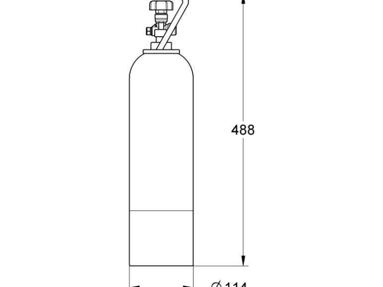 Diese Flasche verfügt über einen praktischen Tragegriff für einen sicheren und problemlosen Transport, sowie über ein integriertes Geräteabsperrventil, das nach der Leerung einen gewissen Restdruck im Flascheninneren aufrechterhält, um einen Rückfluss zu verhindern.