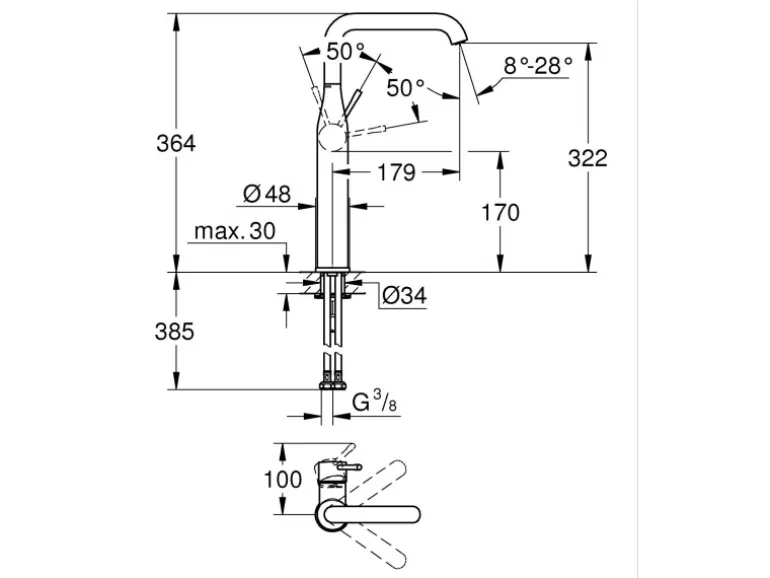 Dank des Grohe QuickFix Plus Systems ist diese Einhand-Armatur im Handumdrehen installiert. Durch die Verwendung von wenigen Einzelteilen ist die Montage sehr einfach.