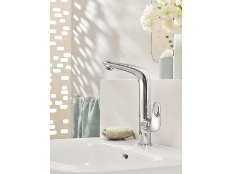 Grohe Armaturen vereinen ein ansprechendes Äußeres mit maximaler Haltbarkeit und hervorragender Effizienz, gewährleistet durch exzellente deutsche Technik. Diese vielseitige Armatur zur 1-Loch-Montage ist leicht zu installieren und passt zu den verschiedensten Badezimmerprojekten. Die Waschtischarmatur ist Bestandteil der Eurostyle Serie und lässt sich mühelos mit anderen Produkten des Sortiments zu einer kompletten Badezimmerlösung kombinieren.