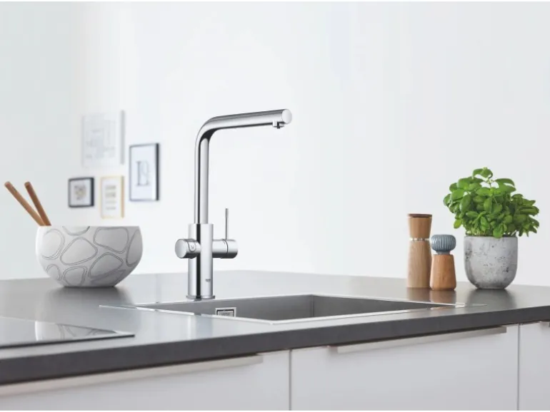 Bestehend aus Grohe Blue Home Einhand-Spültischbatterie mit Filterfunktion, Grohe Blue Home Kühler, Grohe Blue Filter S-Size und Grohe Blue 425 g CO²-Kapazität