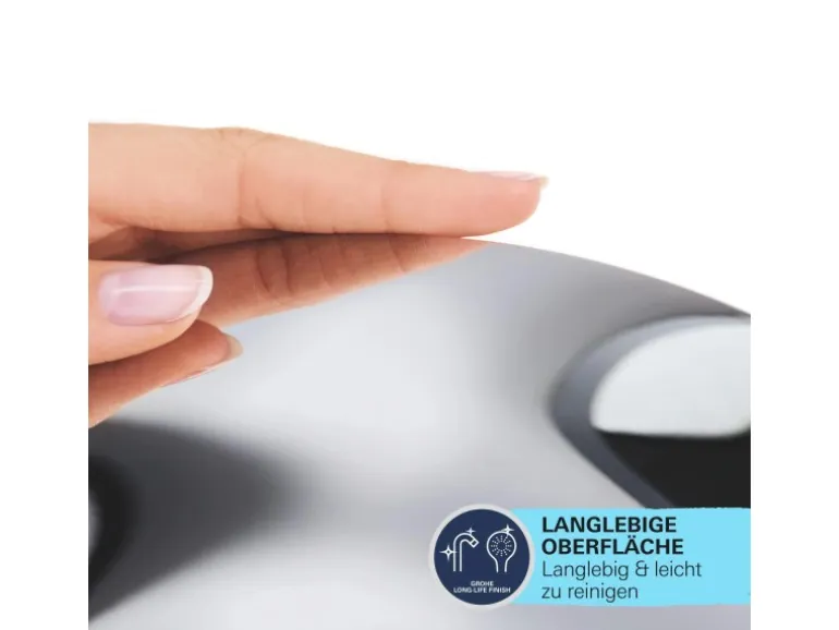 Die Badezimmer-Armatur ist zur Einstellung der Wassermenge und -temperatur mit der Grohe Long-Life Keramikkartusche ausgestattet. Auch nach vielen Jahren Gebrauch ist die Bedienung besonders leichtgängig und präzise. Der Durchflussbegrenzer reduziert den Wasserverbrauch, während mit dem Temperaturbegrenzer gleichzeitig Energie eingespart werden kann. Weiterhin wird die Wasserqualität verbessert, da das Wasser nicht in Kontakt mit Blei oder Nickel kommt.