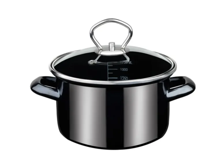 GSW Fleischtopf Profi-Black-Star mit Glasdeckel 16cmDieser Kochtopf ist aus extra schwerem Stahl-Emaille gefertigt und verfügt innen über eine praktische Literskala. Zudem ist der Topf innen und außen leicht zu reinigen, schnitt- und kratzfest, sowie nickelfrei und daher ideal für Allergiker geeignet.Außerdem ist dieser Kochtopf für alle Herdarten – auch für Induktion geeignetFleischtopf mit Glasdeckel ø 16 x H 9,5 cmKochtopf aus Stahl-Emailleca. 1,8 L. Spülmaschinengeeignet