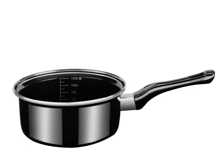 Diese Stielkasserolle ist aus extra schwerem Stahl-Emaille gefertigt und verfügt innen über eine praktische Literskala. Zudem ist die Kasserolle innen und außen leicht zu reinigen, schnitt- und kratzfest, sowie nickelfrei und daher ideal für Allergiker geeignet. Außerdem ist diese Stielkasserolle für alle Herdarten – auch für Induktion geeignet.Stielkasserolle ø 16 x H 8,0 cm, ca. 1,5 L.Spülmaschinengeeignet.