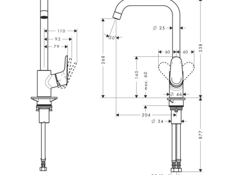 Einhebel-Küchenmischer, Anschlussschläuche, Schaftbefestigung