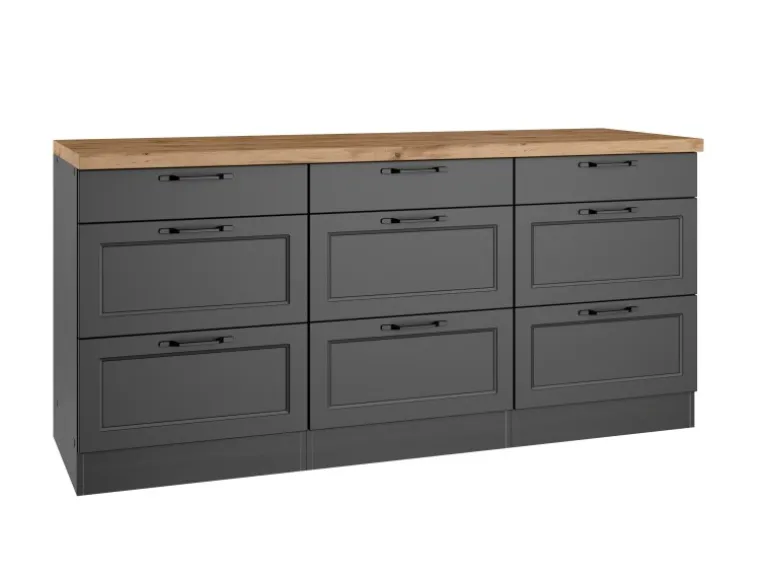 Die Küchenzeile wird Ihnen zerlegt und ohne Dekoration bis Bordsteinkante geliefert. Die Anordnung der Küchenelemente und die Anschläge der Türen sind somit für Sie frei wählbar. Die Arbeitsplatte wird ohne Ausschnitte geliefert. Technische Änderungen und Irrtümer vorbehalten