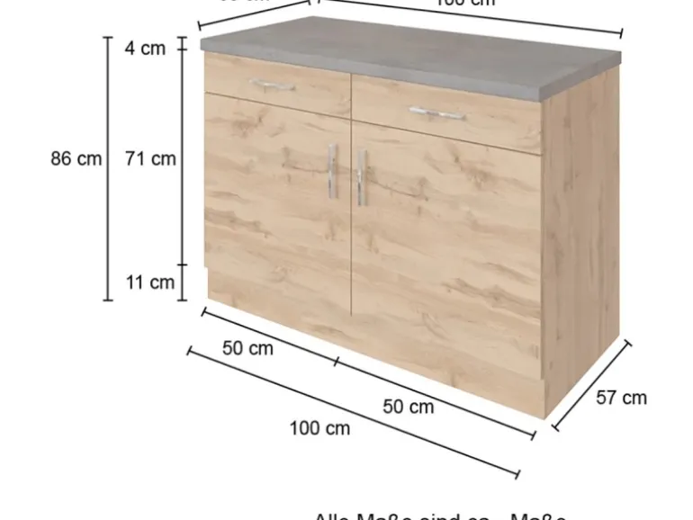 Held Möbel Küchen-Unterschrank Sorrento 100x85x60cm 2 Schub.  Wotan.-Graf.