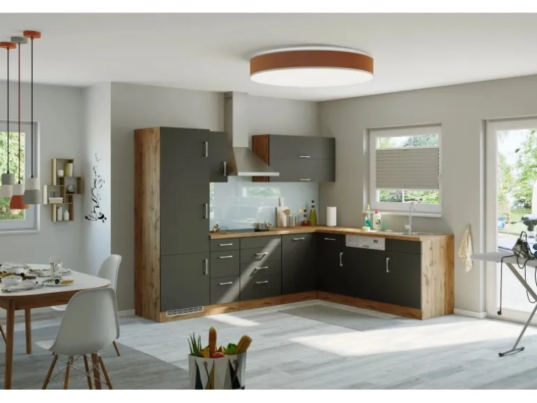 Held Möbel Küchenzeile Sorrento 210/ 270 cm Anthr.-Wotaneiche o. E-Geräte Winkel