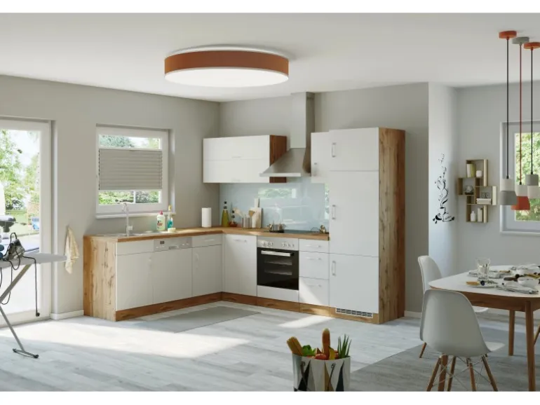 Die Küchenserie Sorrento besticht durch ihre 4 absolut trendstarken Dekorkombinationen, in denen immer das ausdrucksstarke Eichedekor eine entscheidende Rolle spielt. Durch eine Vielzahl an Zeilen- und Winkelkombinationen, die außerdem durch eine große Auswahl an Ergänzungsmöbeln komplettiert werden, ergibt sich ein breites Spektrum an Einrichtungsmöglichkeiten. Möchten Sie Ihren Backofen lieber autark in einem Hochschrank untergebracht haben? Benötigen Sie einen großzügigen Kühlschrank mit integriertem Gefrierschrank? Lagern Sie Ihre Vorräte gern in Auszügen und Apothekerschränken? Alle Schränke sind flexibel aufzustellen und die Türen sind wahlweise rechts oder links montierbar. Entscheiden Sie selbst- hier bleiben keine Wünsche offen.