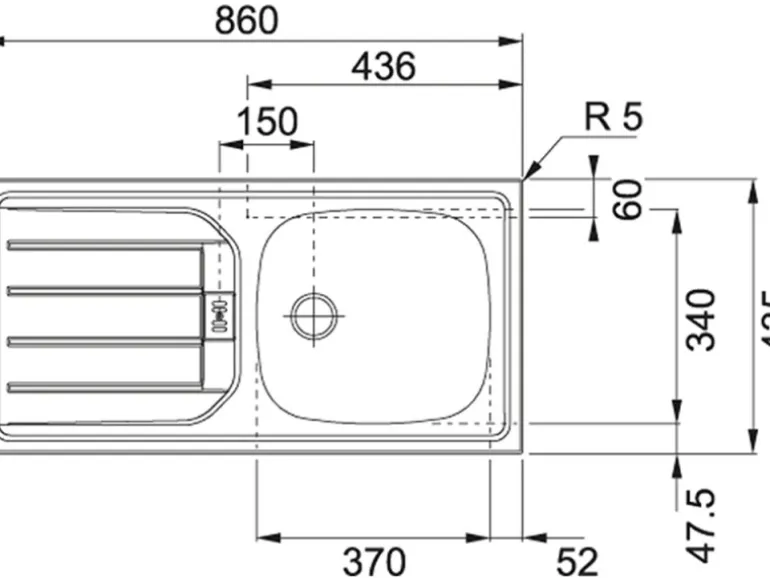 Einbauspüle B x T: 86 cm x 43,5 cm, Beckenmaße B x H x Beckentiefe: 37 cm x 34 cm x 14 cm
