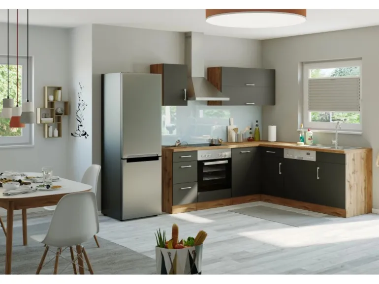 Die Küchenserie Sorrento besticht durch ihre 4 absolut trendstarken Dekorkombinationen, in denen immer das ausdrucksstarke Eichedekor eine entscheidende Rolle spielt. Durch eine Vielzahl an Zeilen- und Winkelkombinationen, die außerdem durch eine große Auswahl an Ergänzungsmöbeln komplettiert werden, ergibt sich ein breites Spektrum an Einrichtungsmöglichkeiten. Möchten Sie Ihren Backofen lieber autark in einem Hochschrank untergebracht haben? Benötigen Sie einen großzügigen Kühlschrank mit integriertem Gefrierschrank? Lagern Sie Ihre Vorräte gern in Auszügen und Apothekerschränken? Alle Schränke sind flexibel aufzustellen und die Türen sind wahlweise rechts oder links montierbar. Entscheiden Sie selbst- hier bleiben keine Wünsche offen.