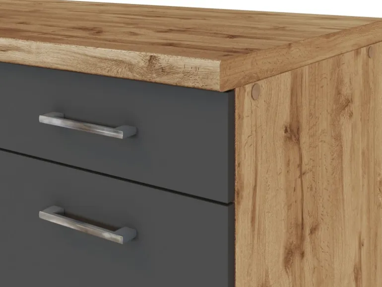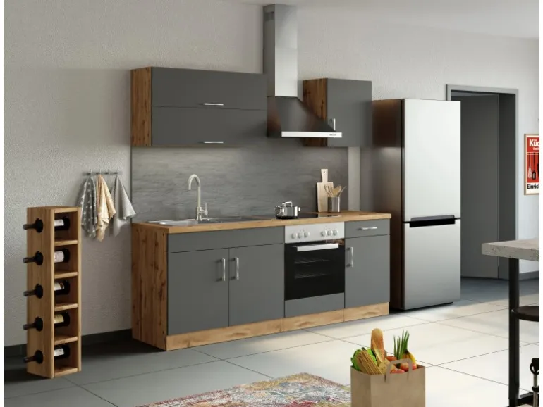 Die Küchenserie Sorrento besticht durch ihre 4 absolut trendstarken Dekorkombinationen, in denen immer das ausdrucksstarke Eichedekor eine entscheidende Rolle spielt. Durch eine Vielzahl an Zeilen- und Winkelkombinationen, die außerdem durch eine große Auswahl an Ergänzungsmöbeln komplettiert werden, ergibt sich ein breites Spektrum an Einrichtungsmöglichkeiten. Möchten Sie Ihren Backofen lieber autark in einem Hochschrank untergebracht haben? Benötigen Sie einen großzügigen Kühlschrank mit integriertem Gefrierschrank? Lagern Sie Ihre Vorräte gern in Auszügen und Apothekerschränken? Alle Schränke sind flexibel aufzustellen und die Türen sind wahlweise rechts oder links montierbar. Entscheiden Sie selbst- hier bleiben keine Wünsche offen.