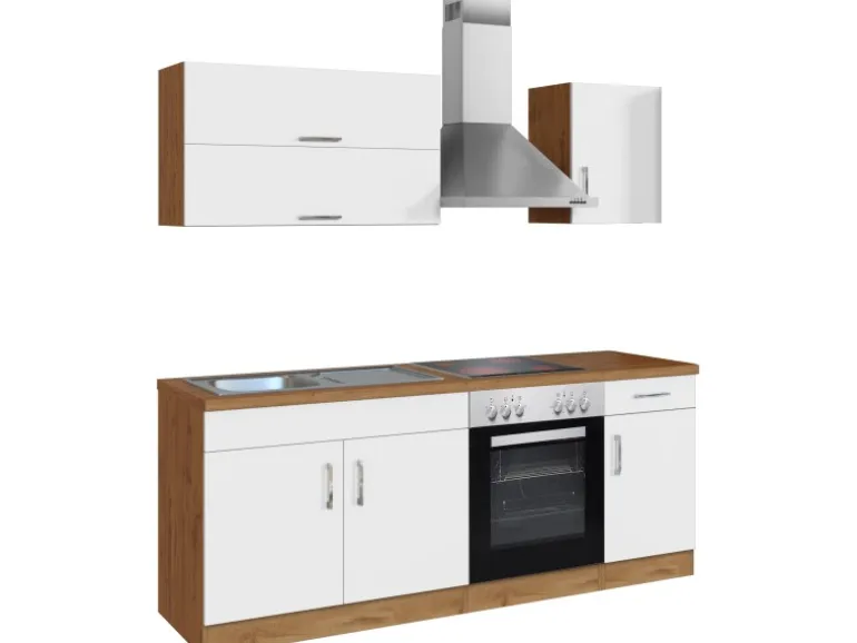 Held Möbel Küchenzeile Sorrento 210 cm Weiß-Wotaneiche
