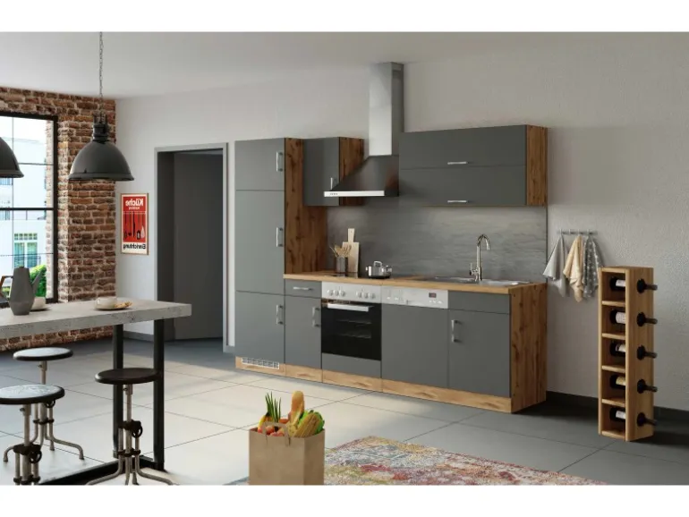 Die Küchenserie Sorrento besticht durch ihre 4 absolut trendstarken Dekorkombinationen, in denen immer das ausdrucksstarke Eichedekor eine entscheidende Rolle spielt. Durch eine Vielzahl an Zeilen- und Winkelkombinationen, die außerdem durch eine große Auswahl an Ergänzungsmöbeln komplettiert werden, ergibt sich ein breites Spektrum an Einrichtungsmöglichkeiten. Möchten Sie Ihren Backofen lieber autark in einem Hochschrank untergebracht haben? Benötigen Sie einen großzügigen Kühlschrank mit integriertem Gefrierschrank? Lagern Sie Ihre Vorräte gern in Auszügen und Apothekerschränken? Alle Schränke sind flexibel aufzustellen und die Türen sind wahlweise rechts oder links montierbar. Entscheiden Sie selbst- hier bleiben keine Wünsche offen.