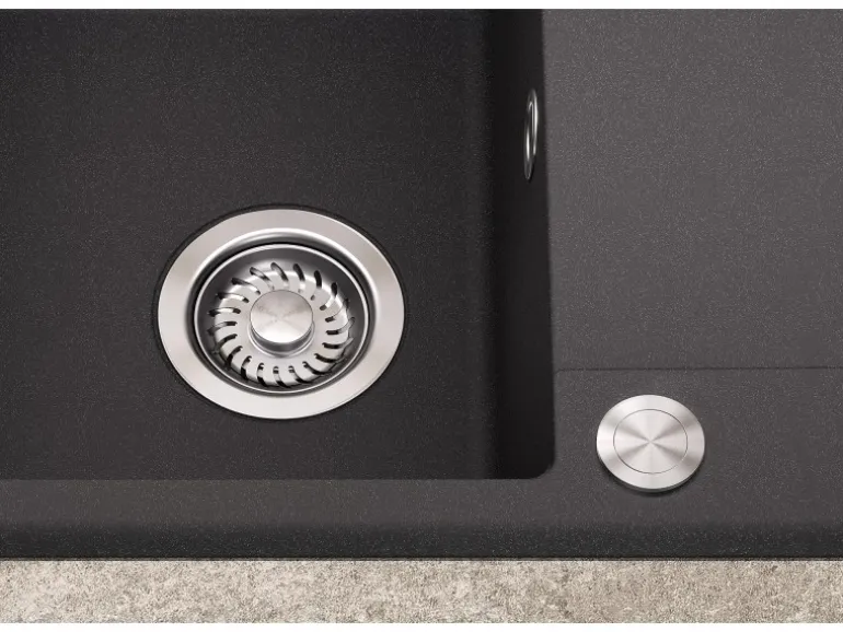 Das Wasser wird mit einem besonders modernen Push-Button-Ventil abgelassen, das sich einfach per Knopfdruck bedienen lässt. Das Spülbecken ist wendbar und kann sowohl auf der linken als auch auf der rechten Seite montiert werde.